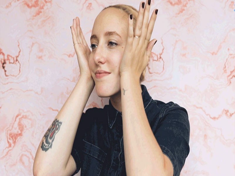 Dùng hơi ấm lòng bàn tay chống da chảy xệ vùng má (Ảnh: vietnammoi.vn)