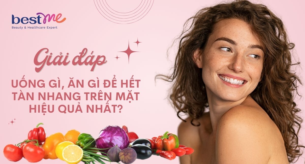 Bạn có biết rằng chế độ ăn uống hàng ngày có thể là “vũ khí” lợi hại giúp bạn đánh bay tàn nhang? Cùng Bestme khám phá xem nên uống gì, ăn gì để hết tàn nhang trên mặt hiệu quả nhất, giúp bạn sở hữu làn da trắng sáng, không tì vết trong bài viết dưới đây ngay nhé!