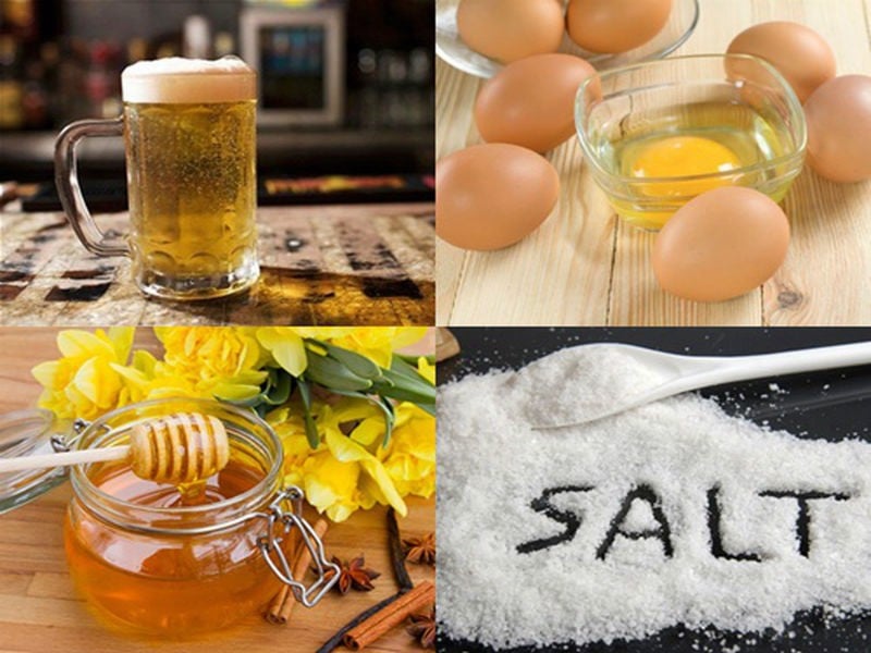 - Nguyên liệu: nửa lon bia, lòng trắng trứng gà, 3 thìa mật ong, 1 thìa muối (nếu muốn tẩy tế bào chết).