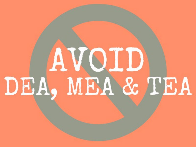 Để việc dưỡng da an toàn, hiệu quả, các nàng nên tránh xa các thành phần có tên gọi có Mea, Dea và Tea. Thật may là nhà sản xuất bắt buộc phải liệt kê thành phần mỹ phẩm trên bao bì.