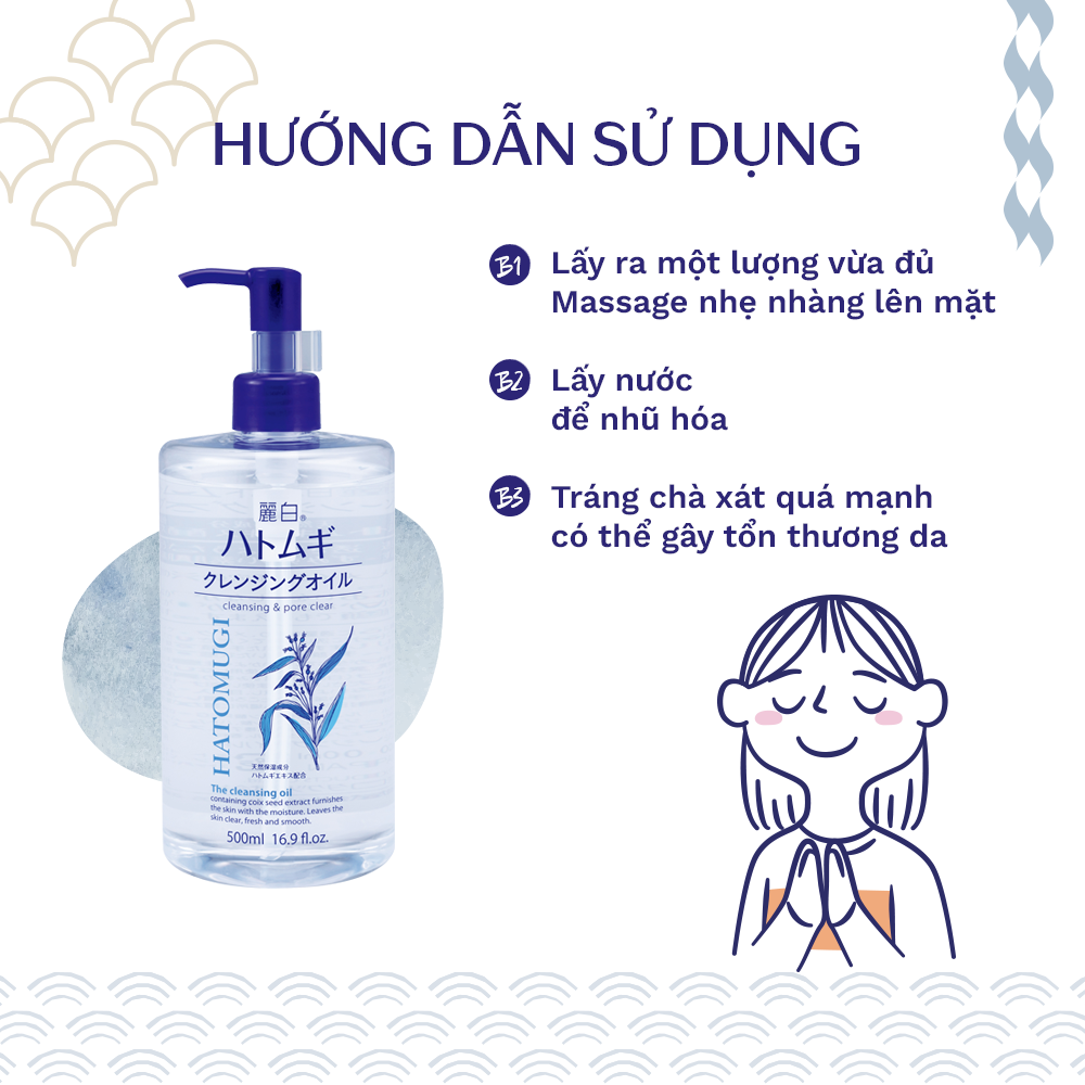 Hướng dẫn sử dụng dầu tẩy trang ý dĩ Hatomugi